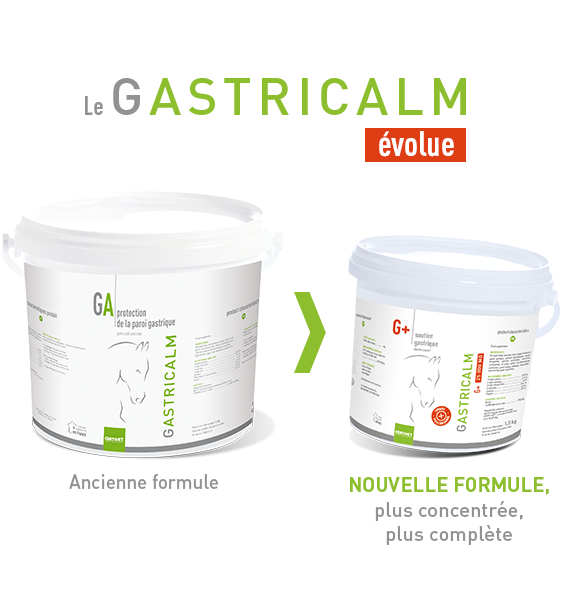 GASTRICALM 25 000, formule plus concentrée, accompagne la régulation de l'acidité gastrique et le soutien de la flore digestive du cheval.