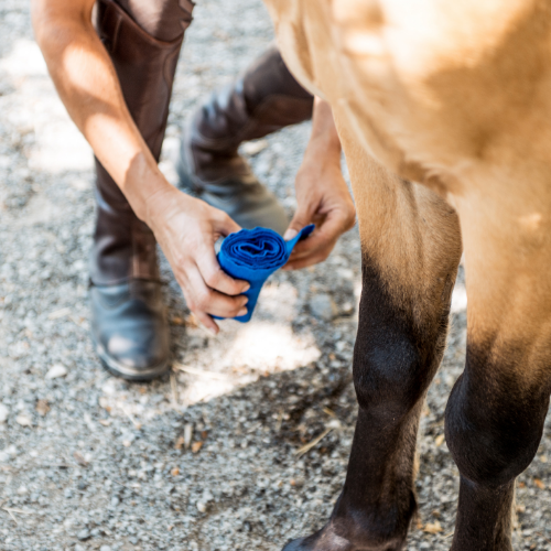 En cas de blessure comme d'une lésion tendineuse (tendinite) ou d'une boiterie, la bande est un élément de soin qui aide le cheval en période de convalescence, de rééducation et de séjour prolongé au box. Elle est utile pour prolonger l'action d'un produit qui soutient la fonction tendineuse et ligamentaire du cheval, pour maintenir en place des soins locaux, mais également pour limiter l'engorgement lié à l'immobilisation.