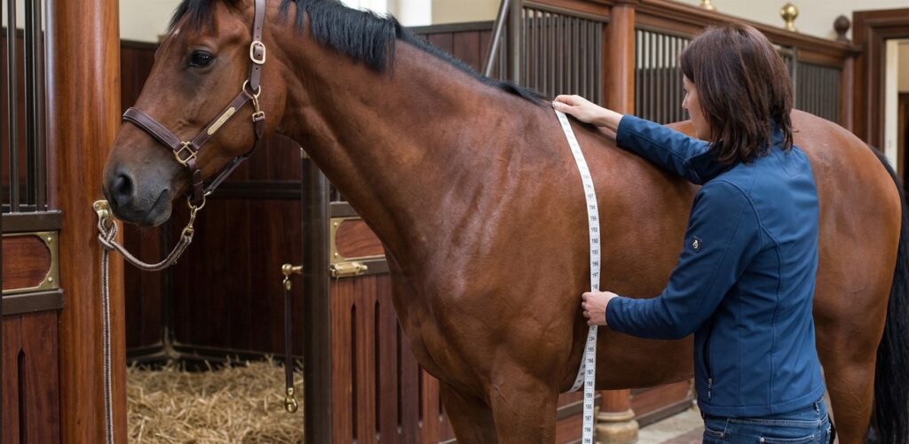 Si vous n’avez pas de balance de pesage, utilisez un ruban barymétrique pour vérifier le périmètre thoracique. Cela permet d’adapter la ration et le dosage des vermifuges, essentiels pour la santé intestinale des chevaux.