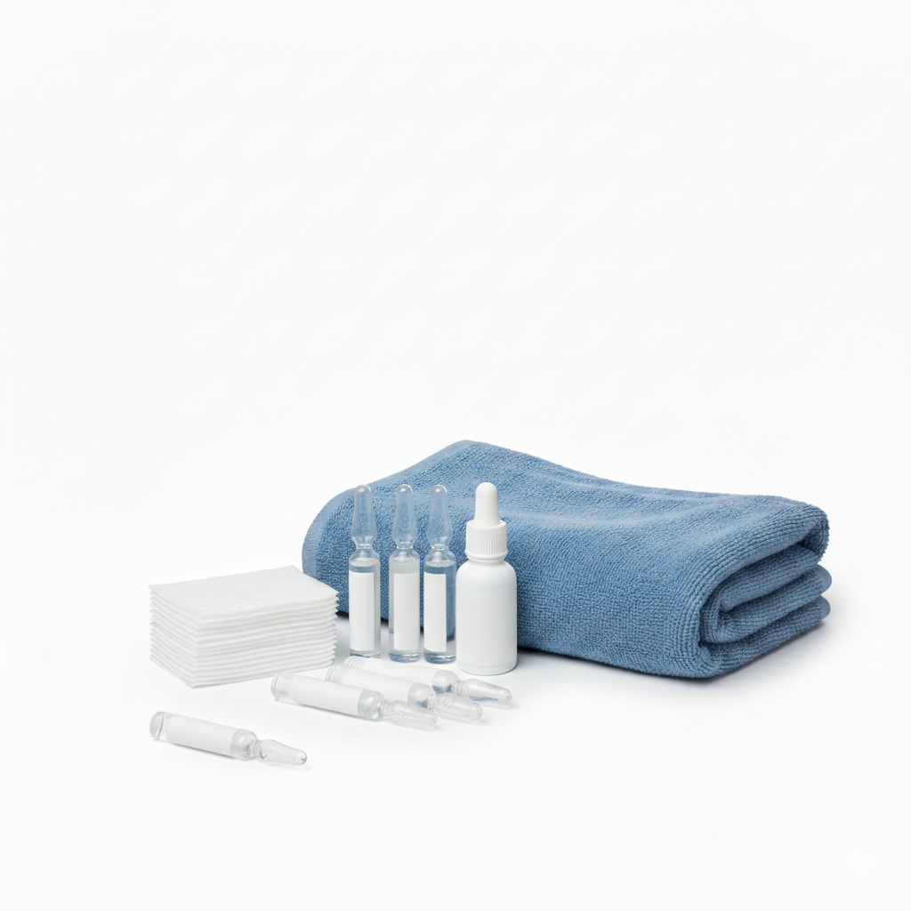 Sérum physiologique en unidoses pour le nettoyage préalable.