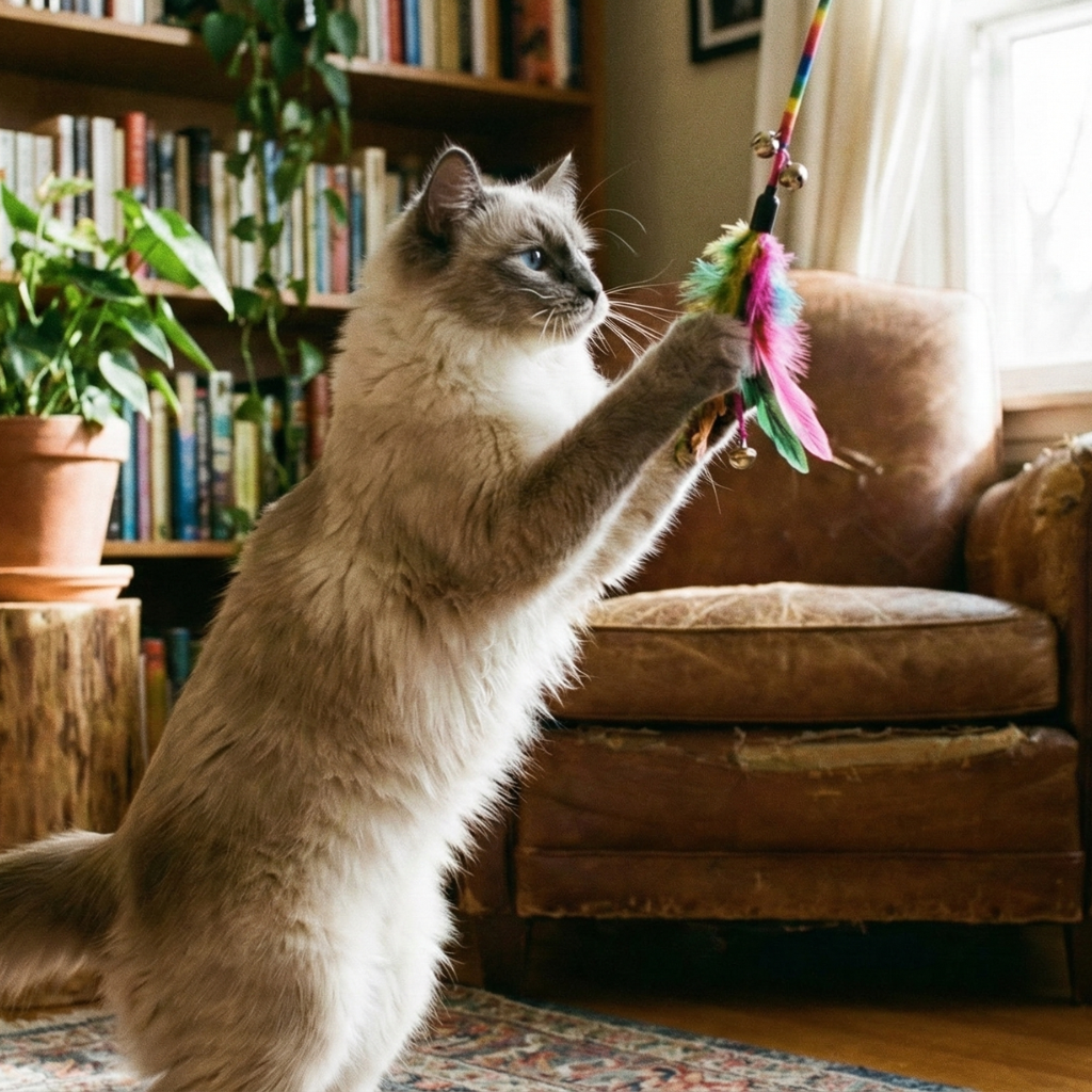En termes de caractéristiques physiques, le balinais est un chat de taille moyenne avec un corps long et svelte. Ses pattes sont fines et élégantes, et sa queue est longue et plumeuse, ajoutant à son allure gracieuse. Sa fourrure, bien que plus longue que celle du Siamois, est moins dense, ce qui réduit la quantité de soins nécessaires par rapport à d’autres races à poil long.