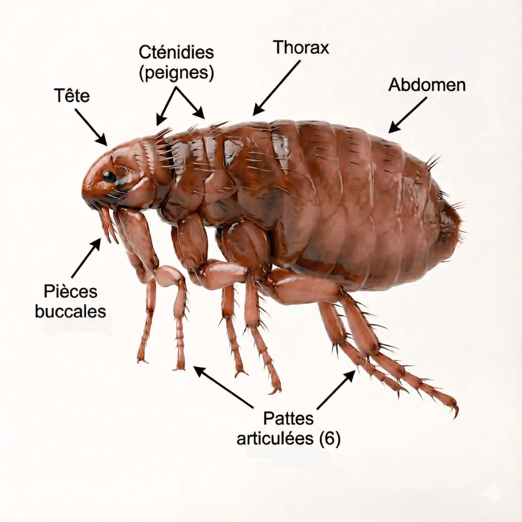 Une puce fait partie de la grande famille des ectoparasites. Cet insecte de quelques millimètres, brun et sans aile, peut infester les mammifères, dont les hommes.
